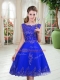 Custom Designed Royal Blue Tulle Lace Up Scoop Sleeveless Knee Length Homecoming Dress Beading and Appliques