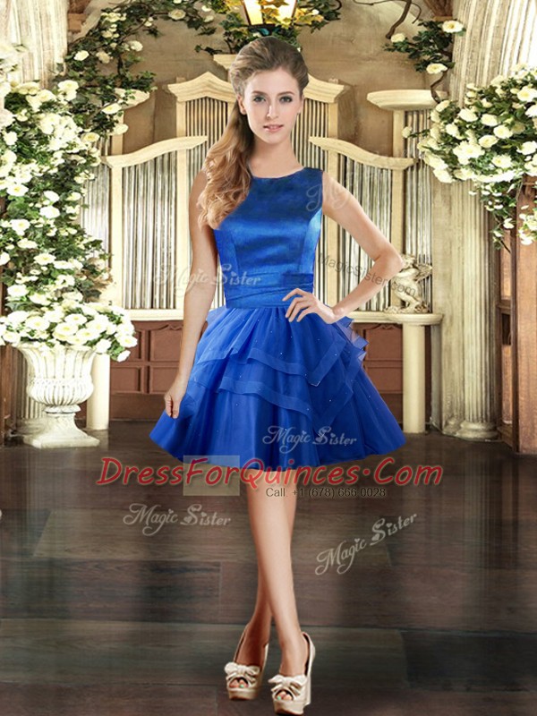 Customized Scoop Sleeveless Lace Up Prom Dress Royal Blue Tulle
