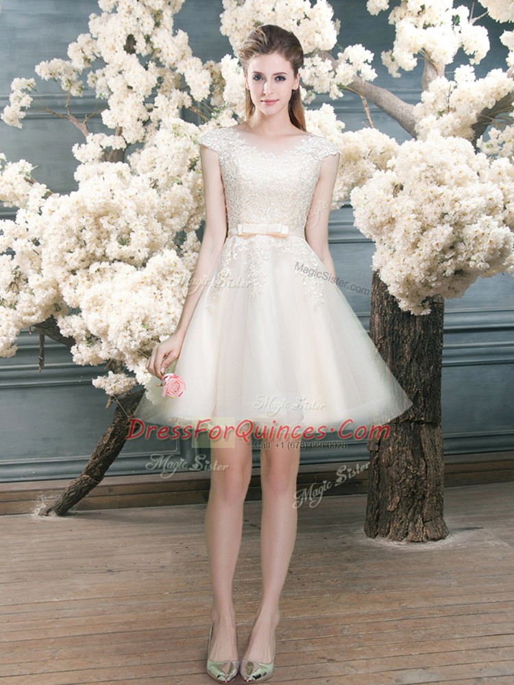 Customized White Prom Dress Prom and Party with Lace Scoop Cap Sleeves Zipper