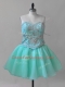 Dynamic Mini Length Aqua Blue Dress for Prom Sweetheart Sleeveless Lace Up
