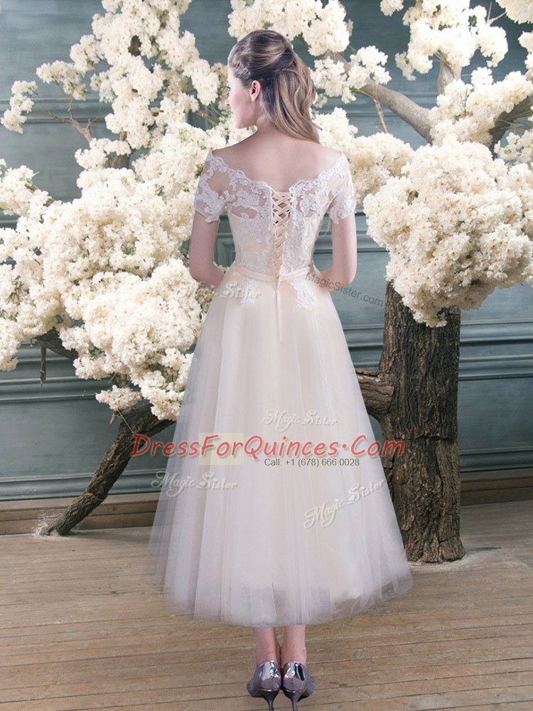 Extravagant Short Sleeves Lace Lace Up Evening Dress