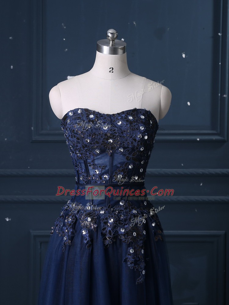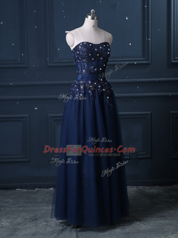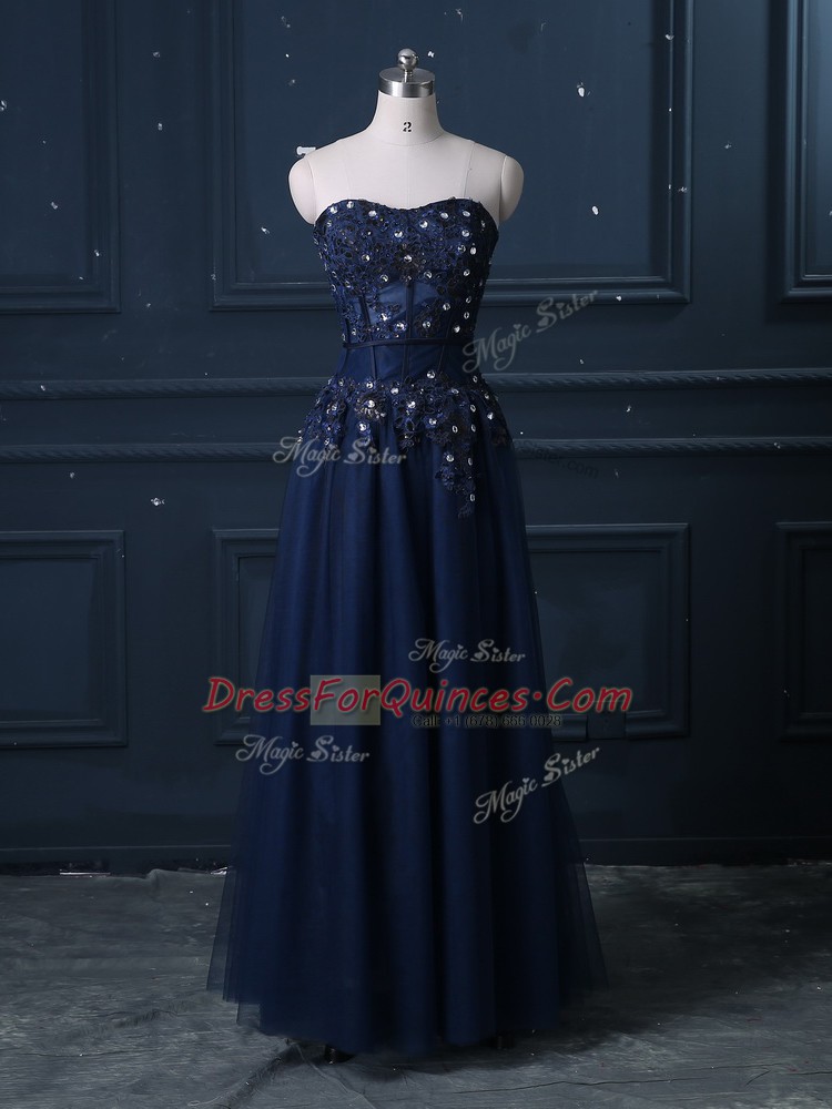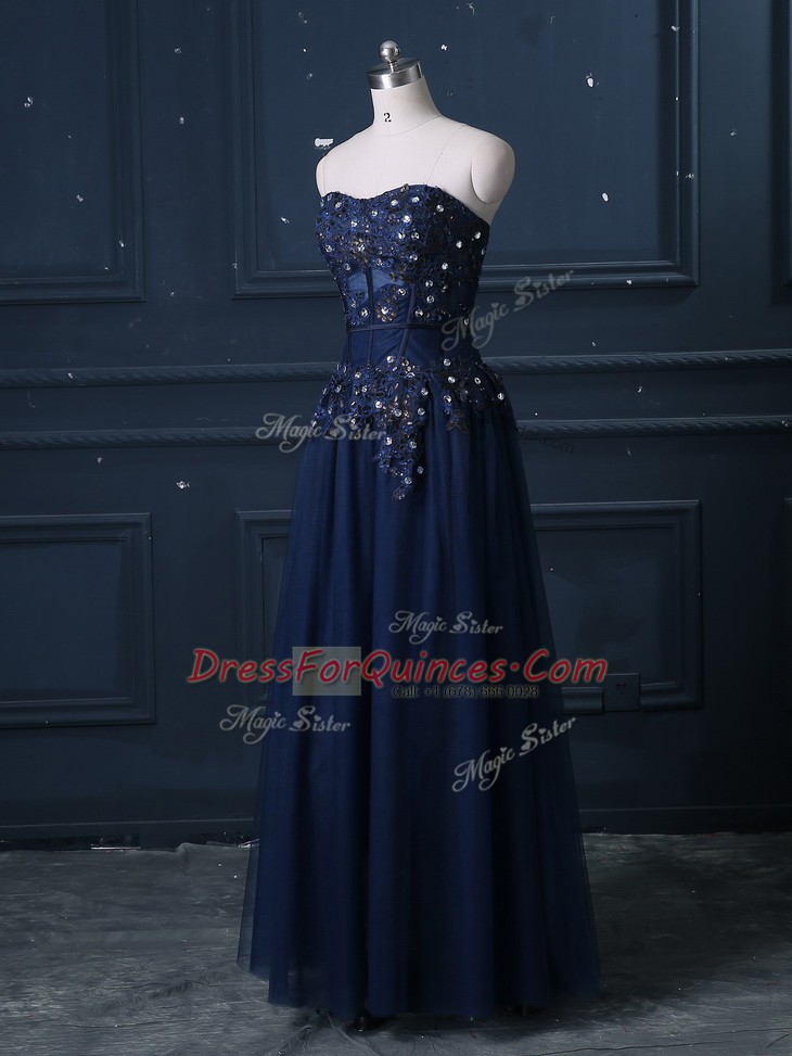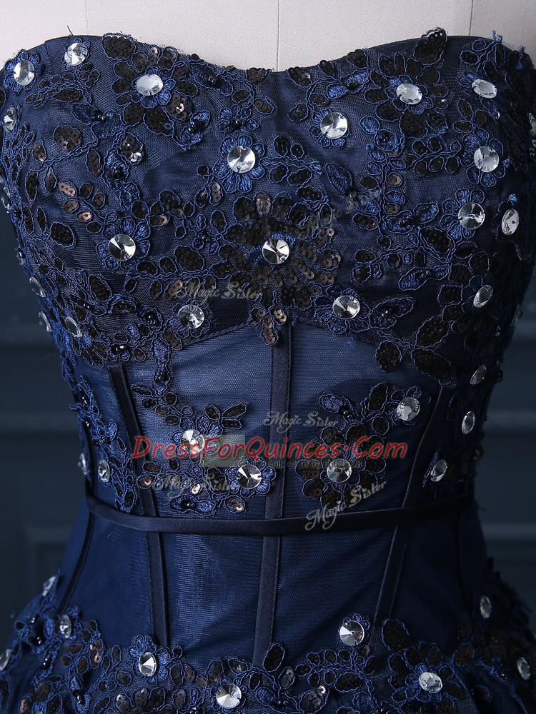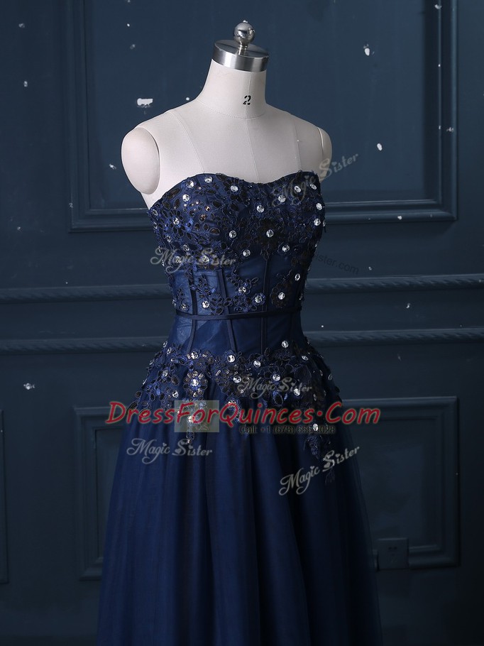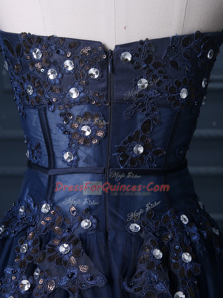 High End Navy Blue Sleeveless Tulle Zipper Prom Dresses for Prom and Party and Military Ball and Sweet 16 and Quinceanera