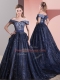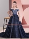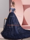 Hot Sale Navy Blue Evening Dress Tulle Court Train Sleeveless Beading