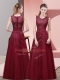 Inexpensive Burgundy Zipper Prom Dresses Lace and Appliques and Belt Sleeveless Floor Length