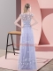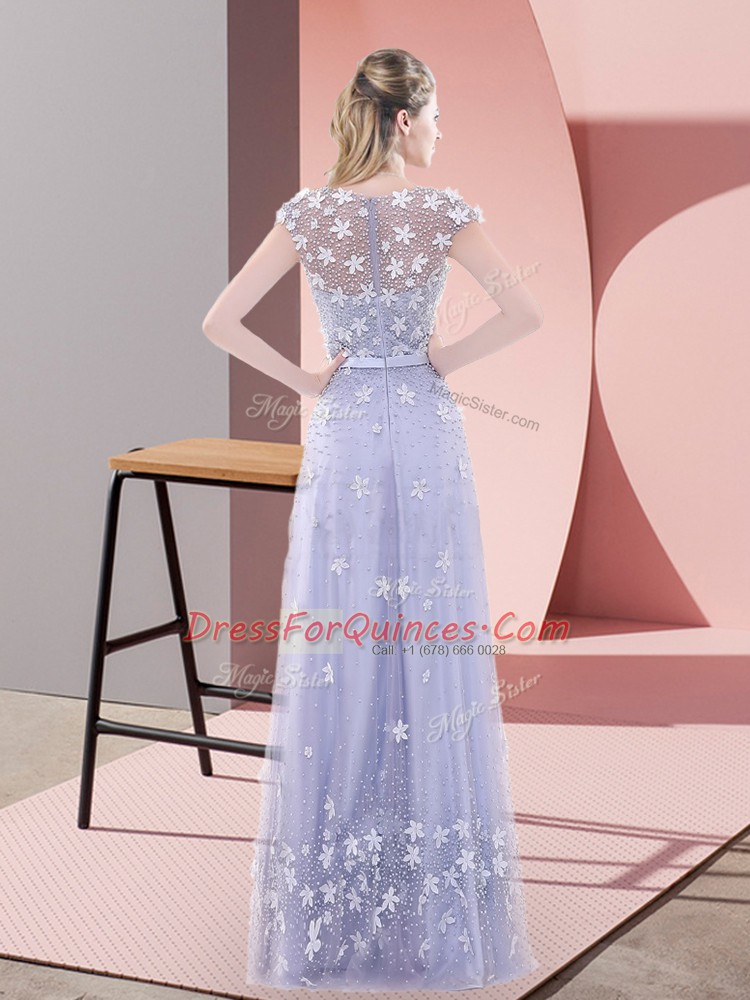 Lavender Tulle Zipper Prom Dresses Cap Sleeves Floor Length Beading and Appliques