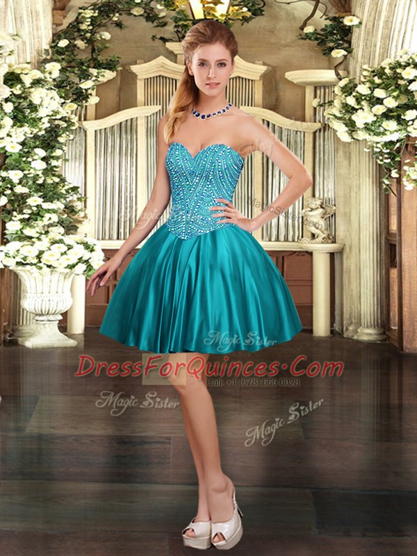 New Style Sleeveless Lace Up Mini Length Beading Prom Gown