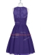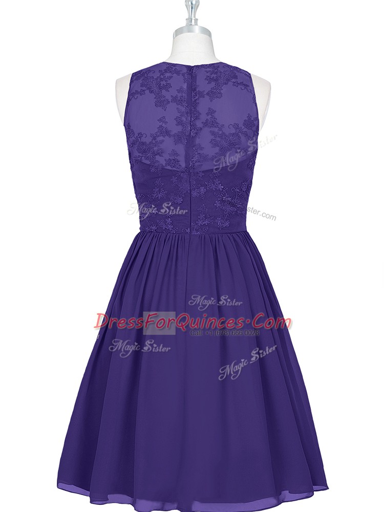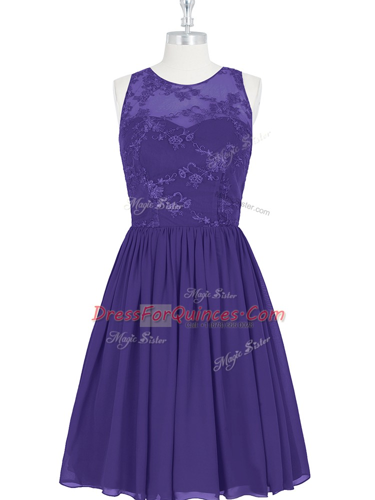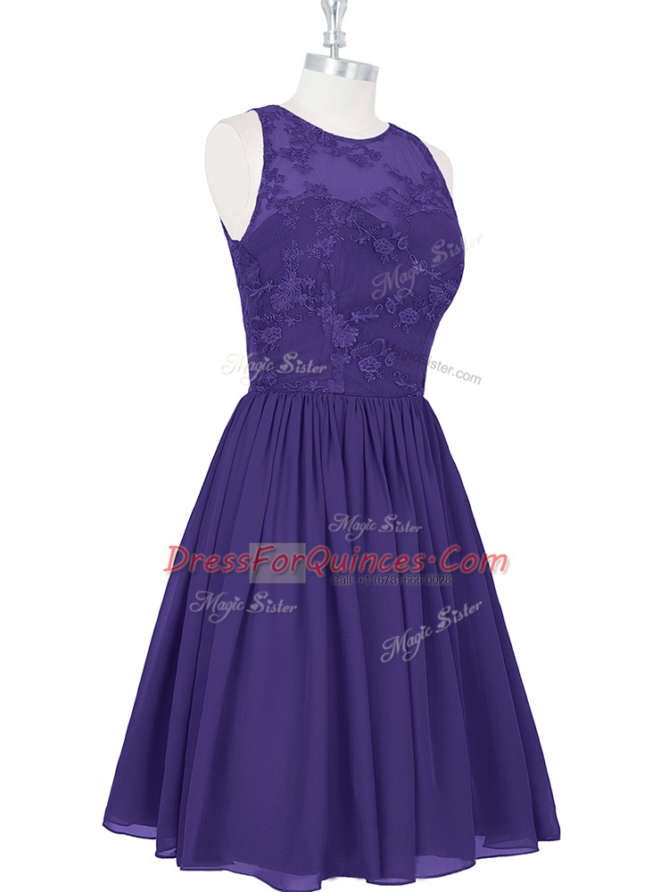 Purple A-line Lace Prom Evening Gown Zipper Chiffon Sleeveless Mini Length