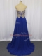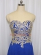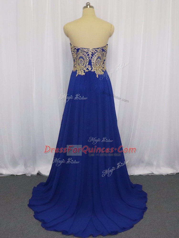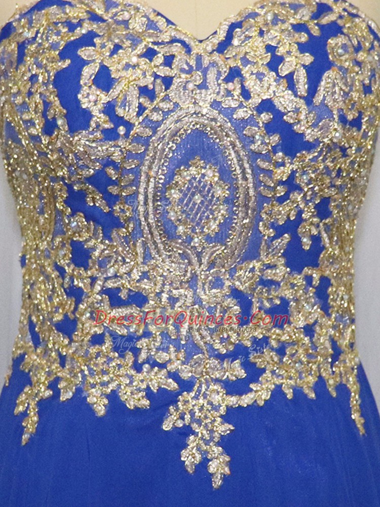 Royal Blue Sleeveless Lace and Appliques Zipper Prom Dresses