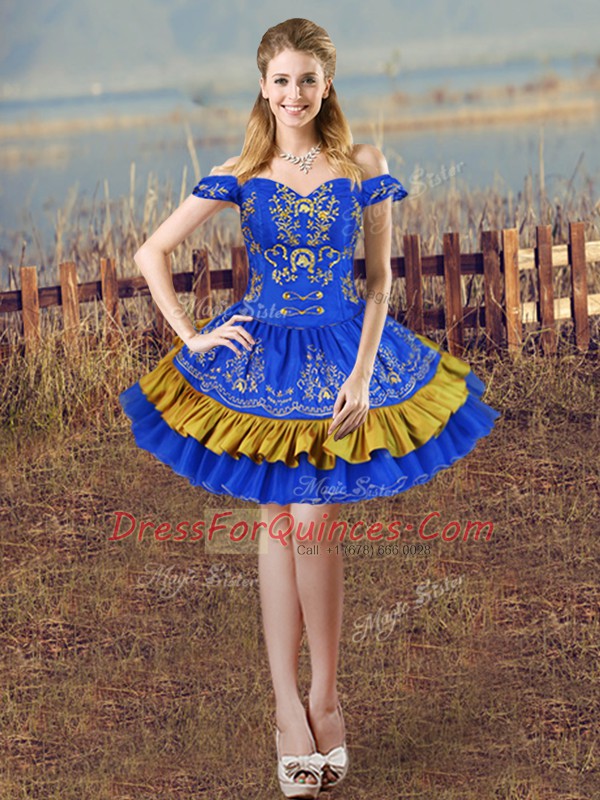 Royal Blue Sleeveless Mini Length Embroidery Lace Up Prom Gown
