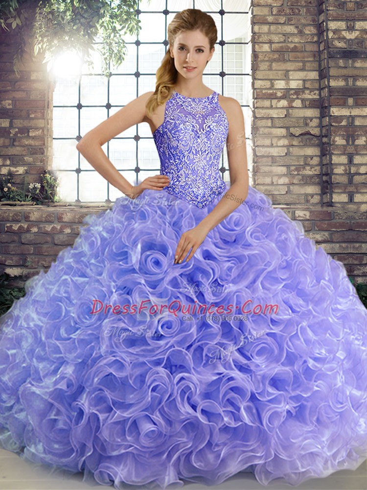 Attractive Sleeveless Fabric With Rolling Flowers Floor Length Lace Up Quinceanera Dresses in Lavender with Beading