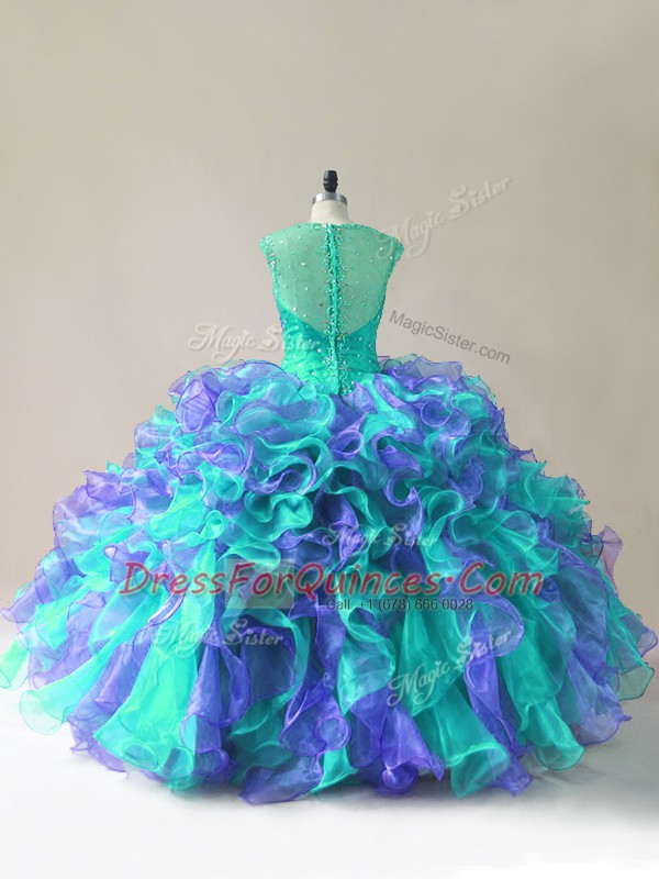 Beading and Ruffles Quinceanera Dresses Multi-color Zipper Sleeveless Floor Length