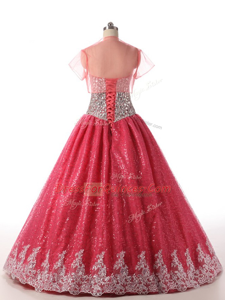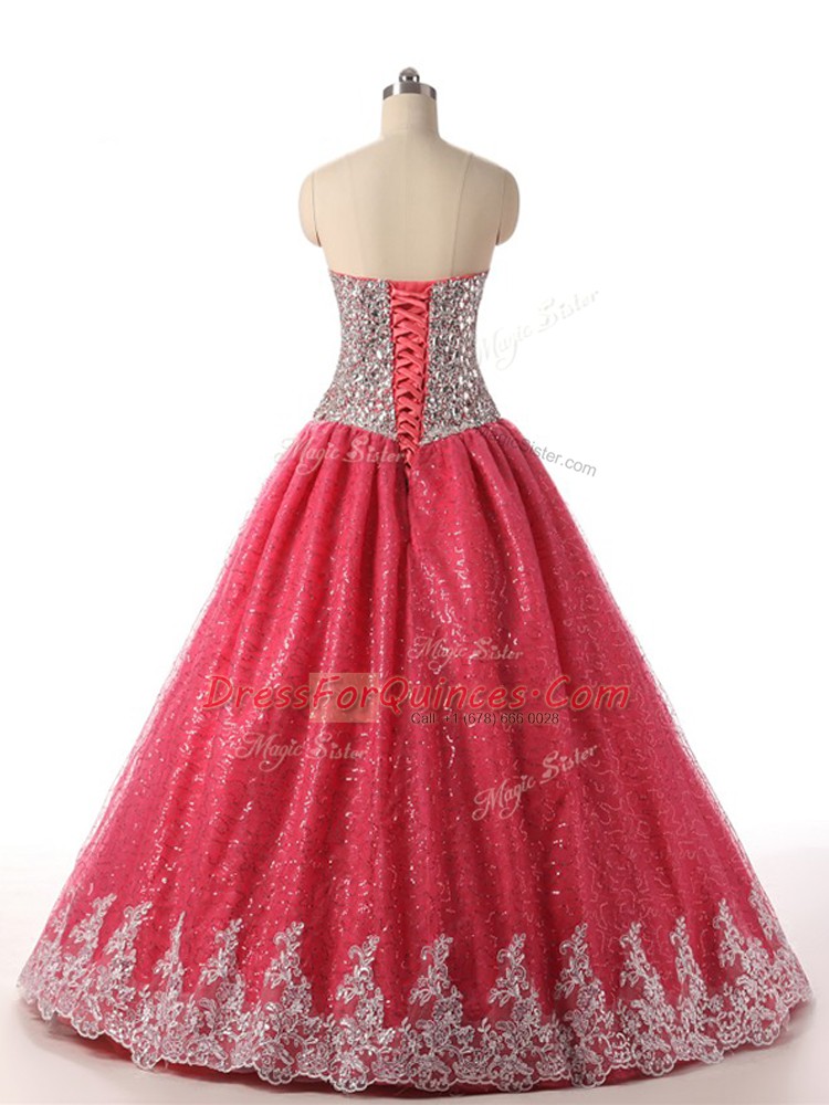 Coral Red Quinceanera Dress Military Ball and Sweet 16 and Quinceanera with Beading and Appliques Sweetheart Sleeveless Lace Up