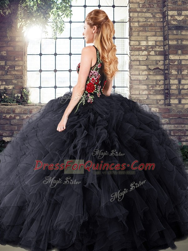 Customized Black Sleeveless Zipper Sweet 16 Quinceanera Dress for Military Ball and Sweet 16 and Quinceanera