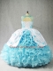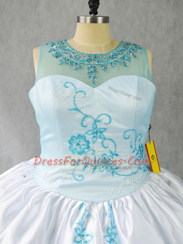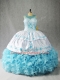 Extravagant Ball Gowns Ball Gown Prom Dress Baby Blue Scoop Fabric With Rolling Flowers Sleeveless Floor Length Lace Up