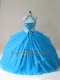 Floor Length Baby Blue Quince Ball Gowns Halter Top Sleeveless Lace Up