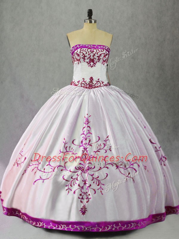 Floor Length Ball Gowns Sleeveless White And Purple Sweet 16 Dress Lace Up