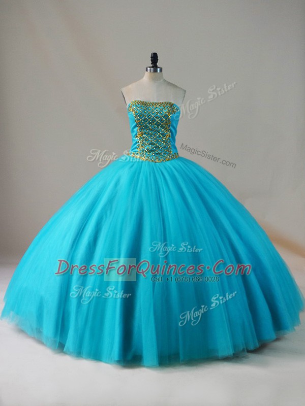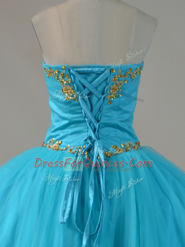 Floor Length Lace Up Sweet 16 Dresses Blue for Sweet 16 and Quinceanera with Beading