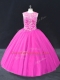 High End Sleeveless Floor Length Beading Lace Up Quinceanera Gown with Fuchsia