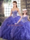 New Arrival Sweetheart Sleeveless Quinceanera Gowns Floor Length Beading and Ruffles Lavender Tulle