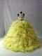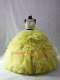 Organza and Sequined Scoop Sleeveless Brush Train Zipper Beading and Ruffles Quinceanera Gown in Yellow Green