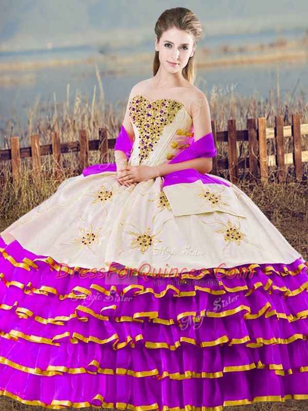 Purple Organza Lace Up Sweetheart Sleeveless Floor Length Quinceanera Dresses Beading and Ruffled Layers