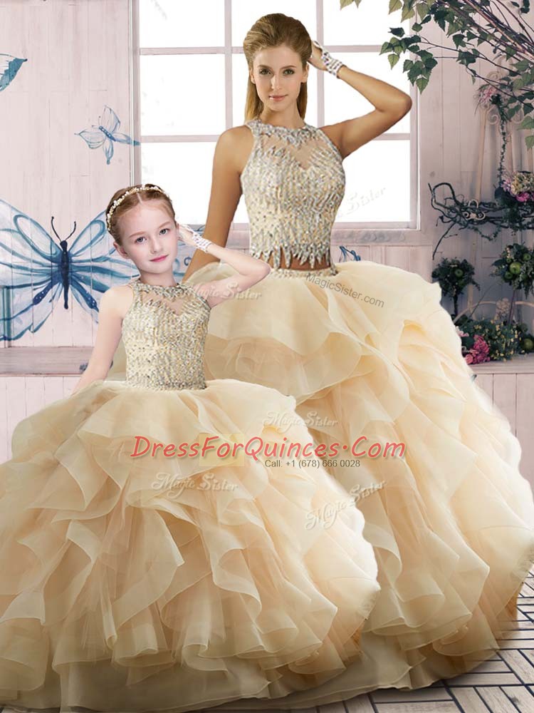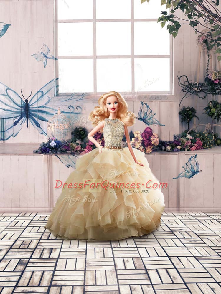 Sleeveless Zipper Floor Length Beading and Ruffles Quinceanera Gown