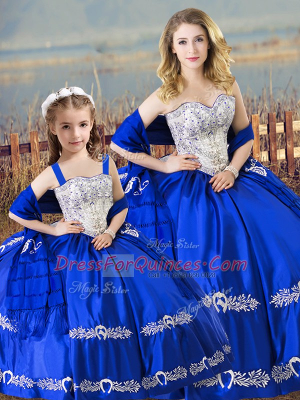 Superior Royal Blue Ball Gowns Satin Sweetheart Sleeveless Beading and Embroidery Floor Length Lace Up Quince Ball Gowns
