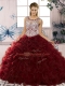 Sweet Sleeveless Organza Floor Length Lace Up Quinceanera Gown in Burgundy with Beading and Ruffles
