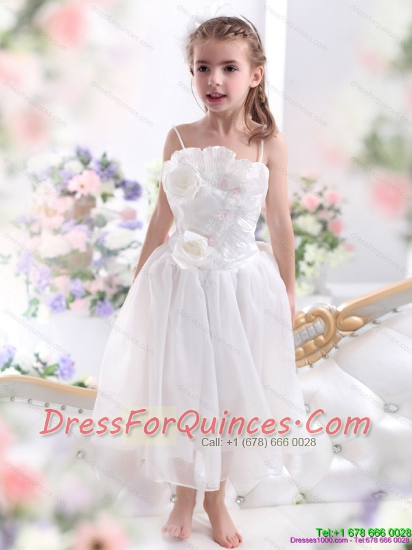 2015 Adorable White Spaghetti Straps Little Girl Pageant Dresses with Flowers and Ruffles
