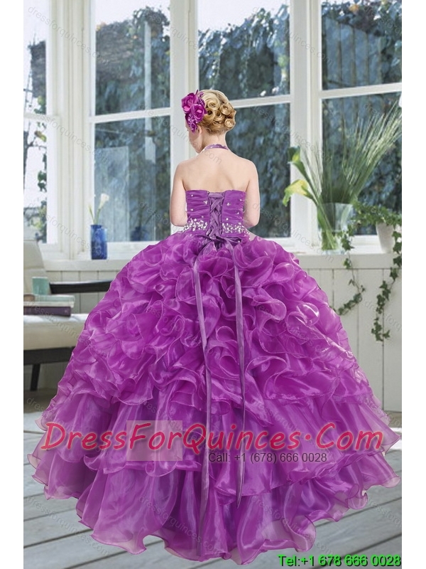 2015 Romantic Beading and Ruffles Organza Little Girl Pageant Dress with Halter