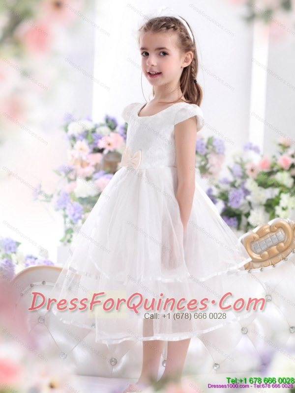 2015 Scoop Adorable White Little Girl Pageant Dresses with Bowknot and Ruffles