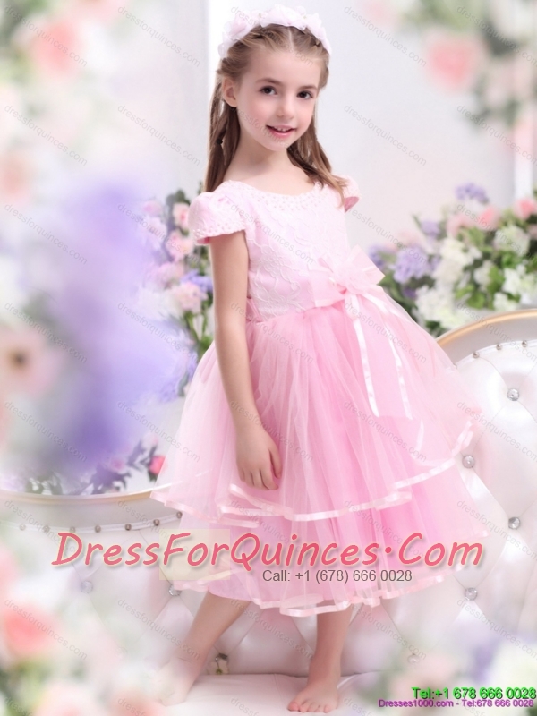 Adorable Bownot and Appliques 2015 Little Girl Pageant Dresses in Rose Pink