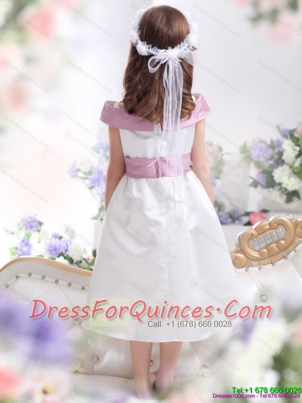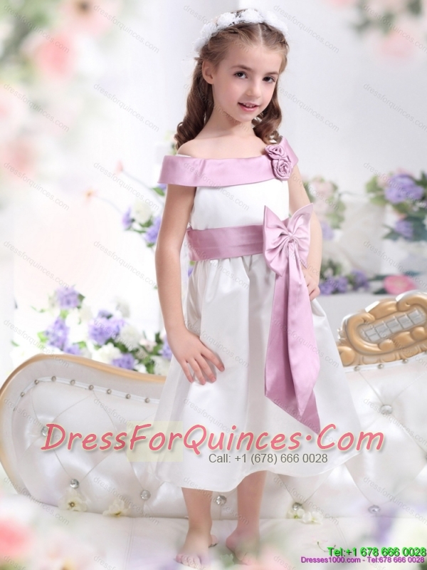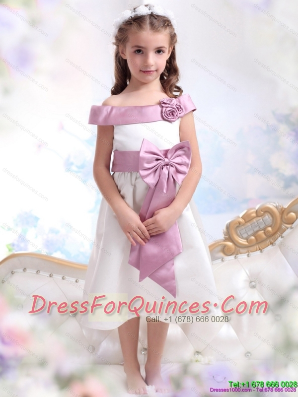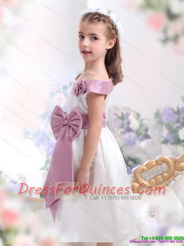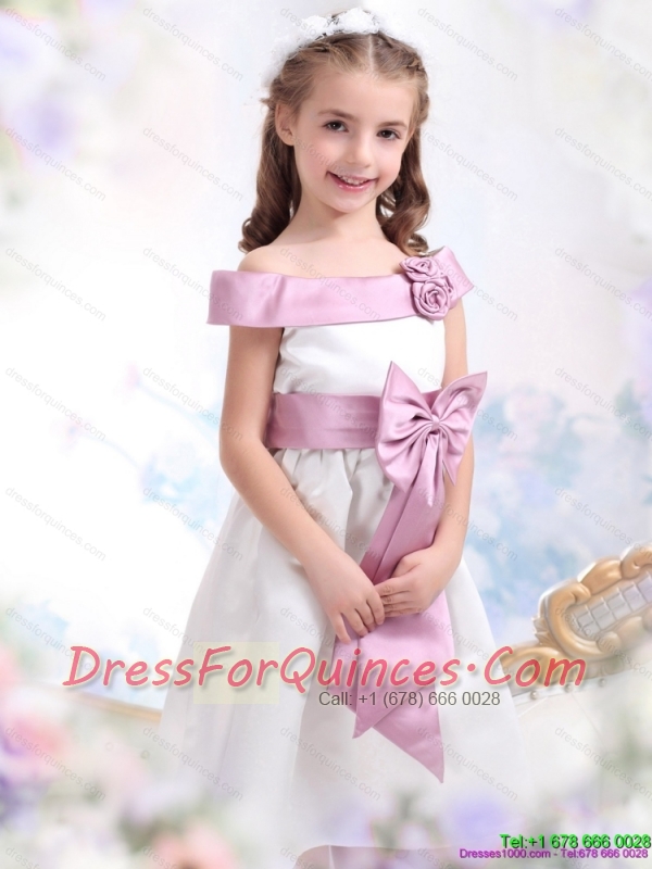 Adorable Off The Shoulder White Little Girl Pageant Dresses with Flower and Bowknot