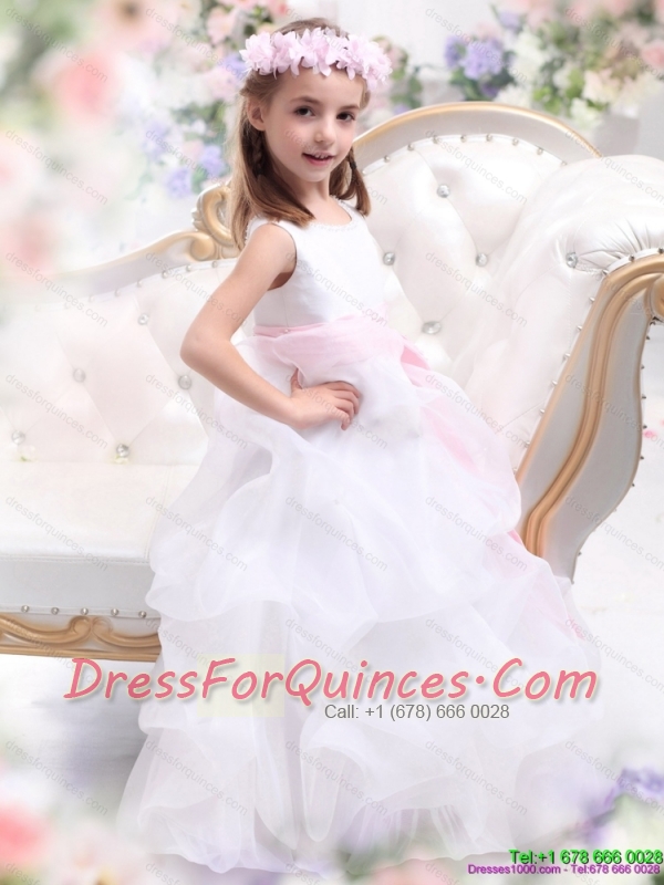 Adorable Scoop White Little Girl Pageant Dress with Sash and Ruffles