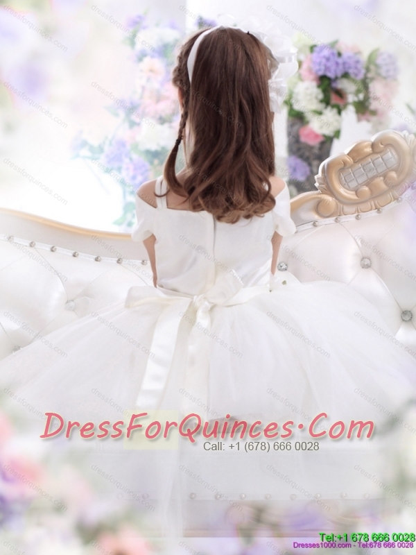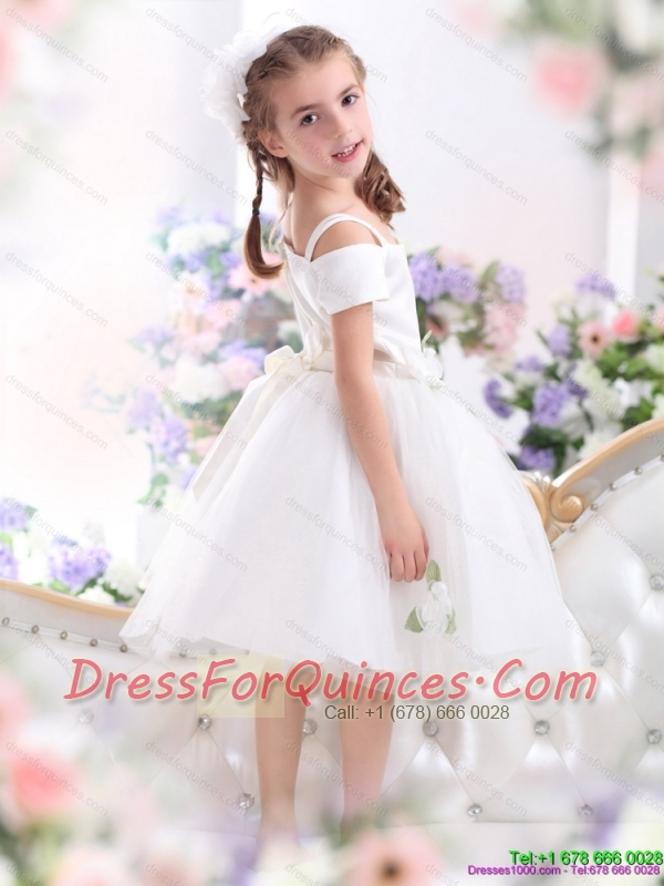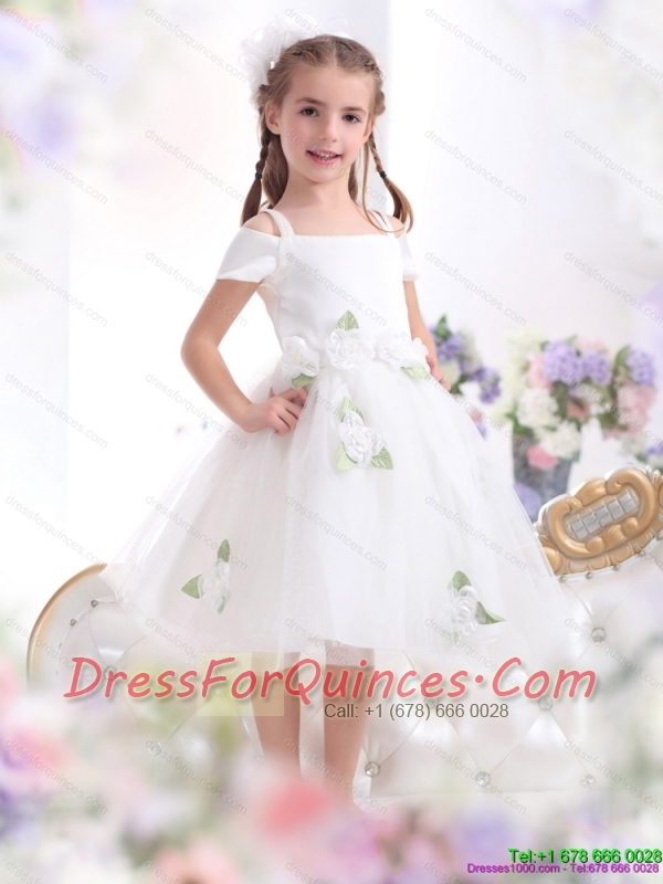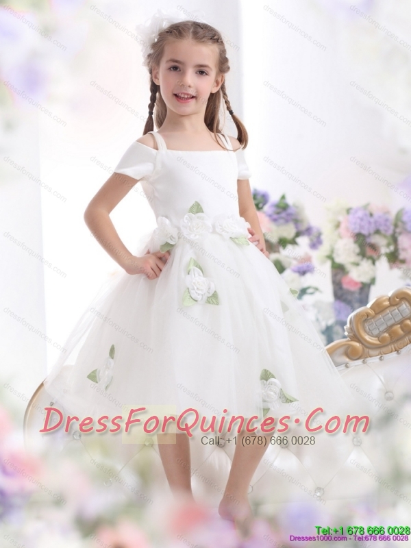 Adorable Spaghetti Straps White 2015 Little Girl Pageant Dress with Hand Made Flowers