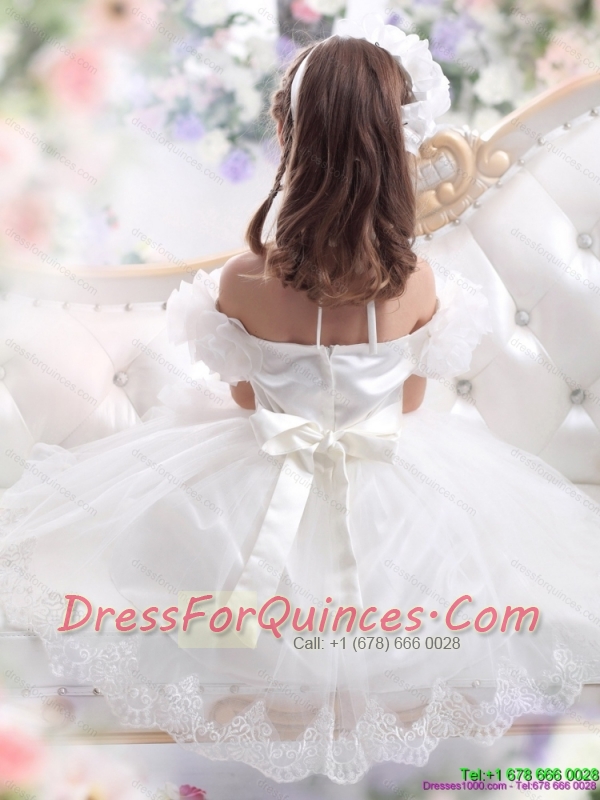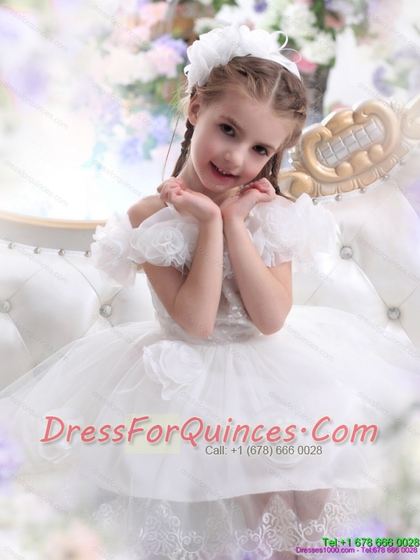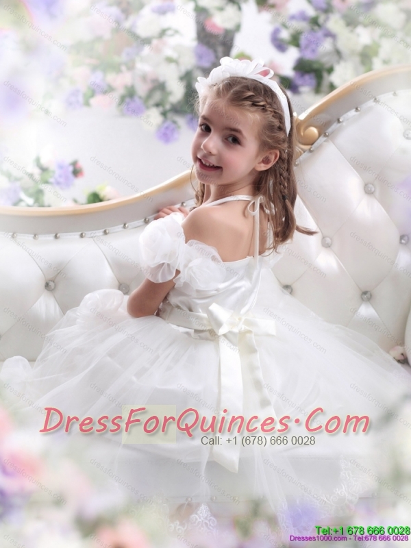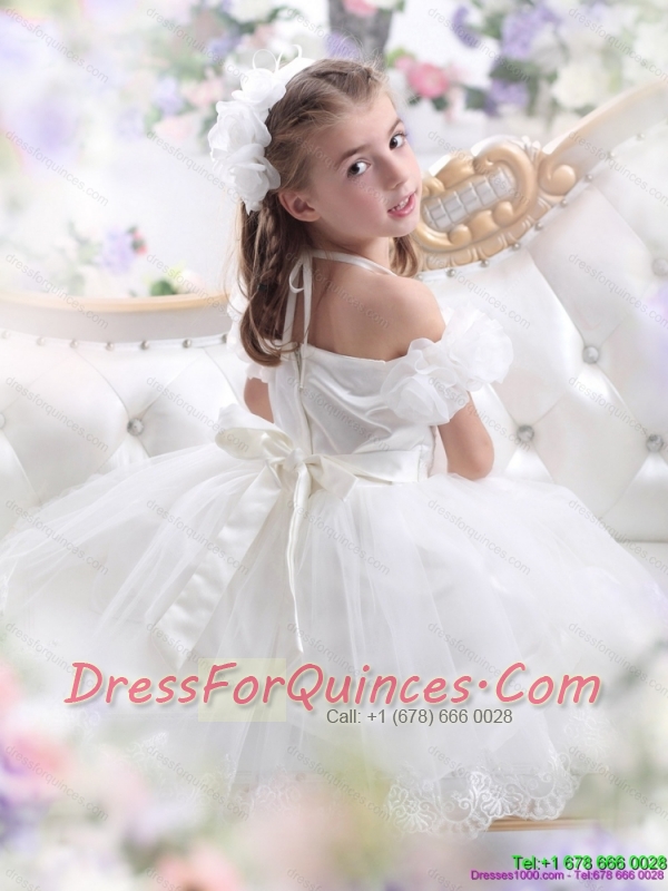 Adorable White Halter Top Little Girl Pageant Dress with Hand Made Flower