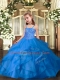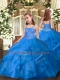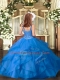 Affordable Blue Straps Lace Up Beading and Ruffles Little Girls Pageant Dress Wholesale Sleeveless