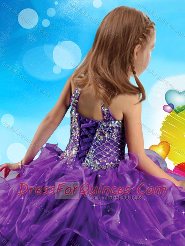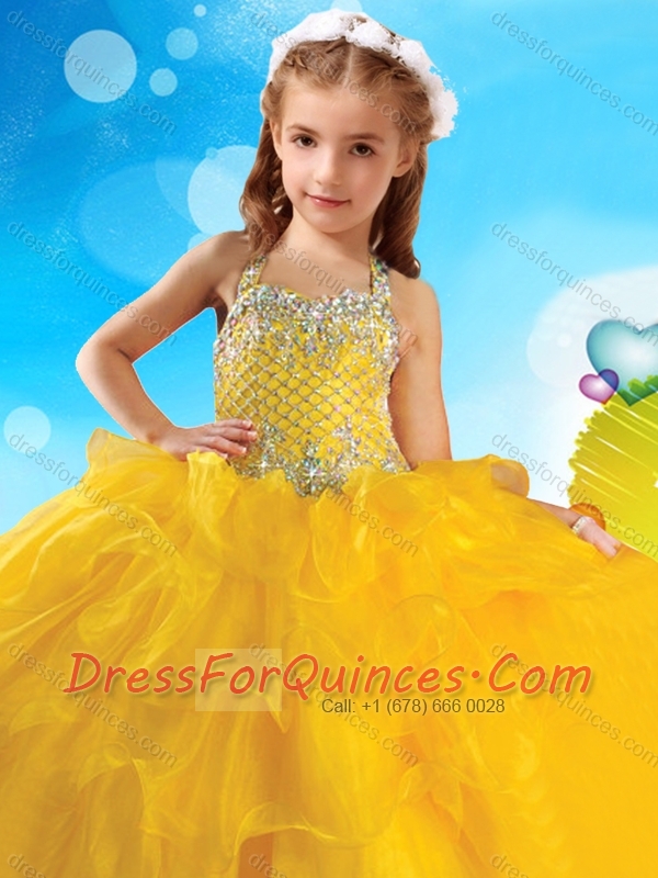 Affordable Halter Top Big Puffy Adorable Little Girl Pageant Dress with Beading and Ruffles