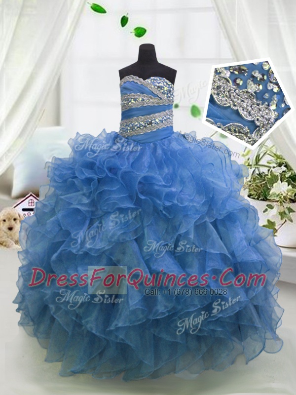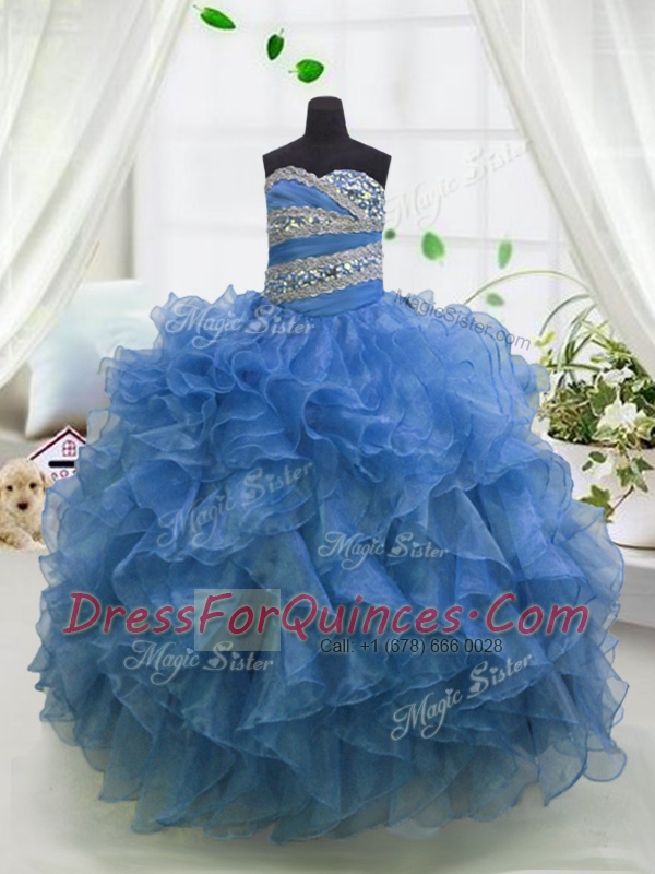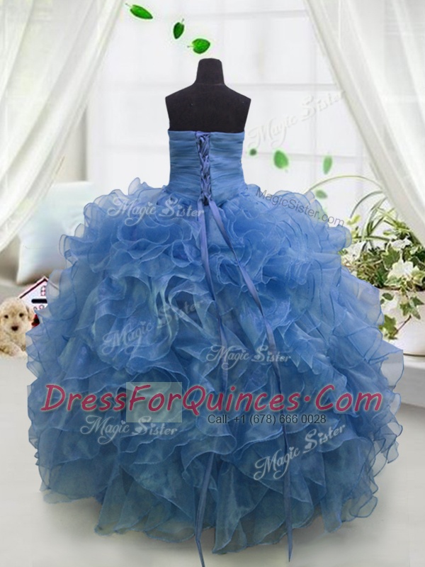Ball Gowns Little Girl Pageant Gowns Blue Sweetheart Organza Sleeveless Floor Length Lace Up