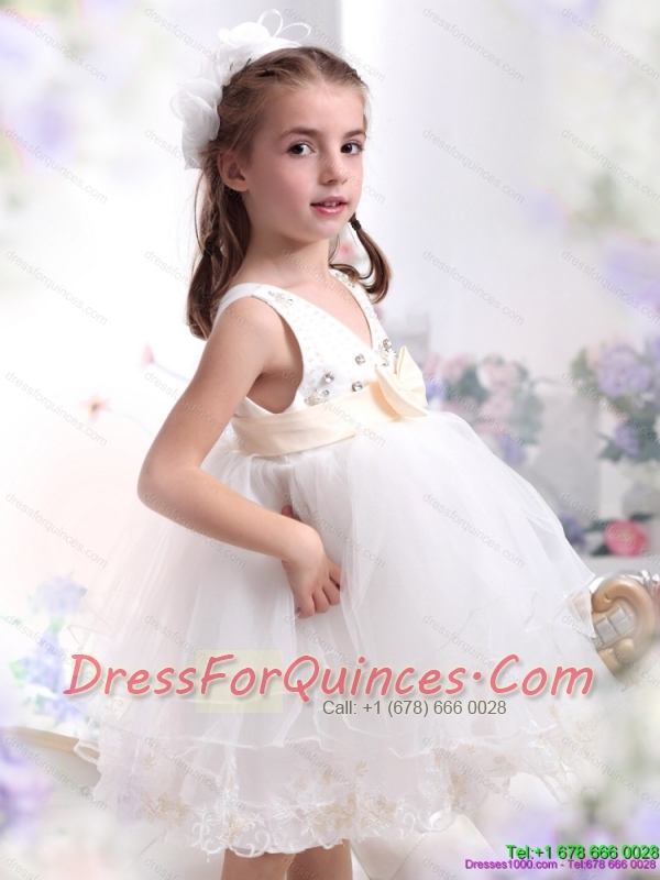 Beading Ruffled 2015 Adorable White Little Girl Pageant Dress with Bownot