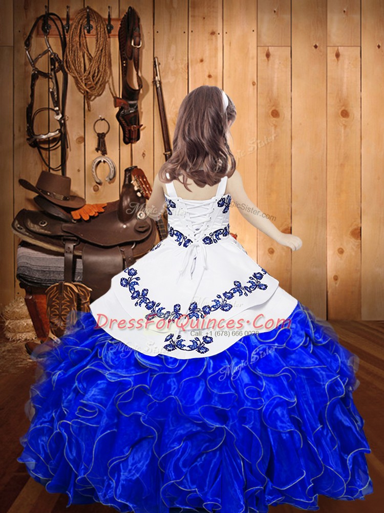 Best Floor Length Orange Little Girls Pageant Gowns Straps Sleeveless Lace Up