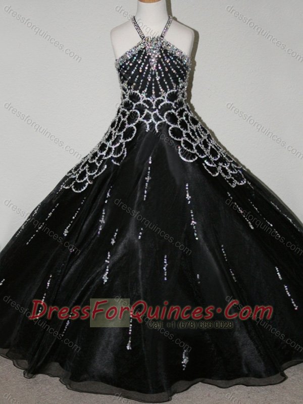 Cheap Beaded Decorated Halter Top and Bodice Little Girl Pageant Dress in Black