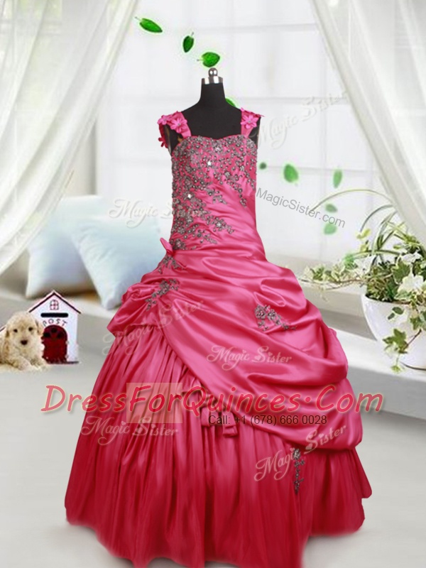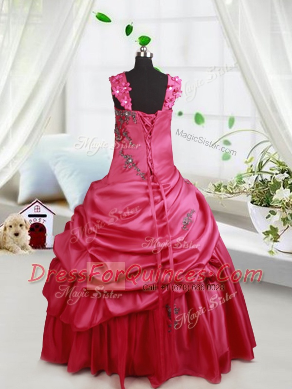 Colorful Straps Pick Ups Floor Length Ball Gowns Sleeveless Hot Pink Little Girls Pageant Dress Lace Up