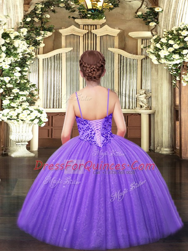 Customized Ball Gowns Girls Pageant Dresses Baby Blue Spaghetti Straps Tulle Sleeveless Floor Length Lace Up