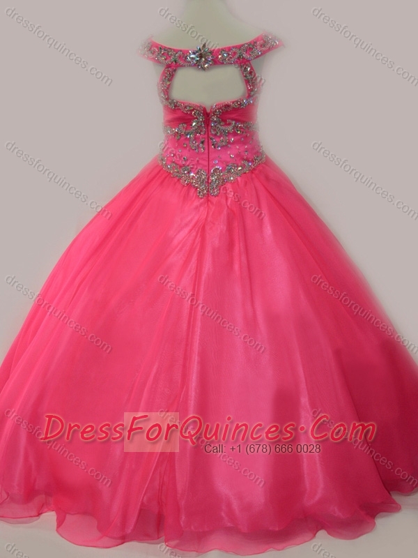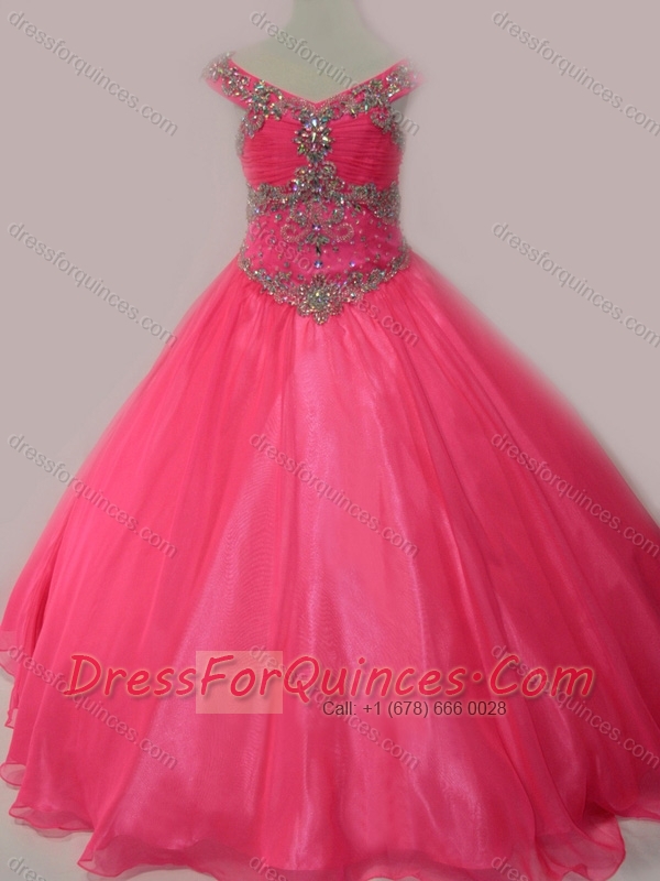 Cute Beaded Bodice Zipper Up Little Girl Pageant Dress in Hot Pink