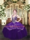 Dark Purple Sleeveless Satin and Organza Lace Up Child Pageant Dress for Party and Quinceanera and Wedding Party