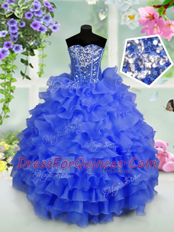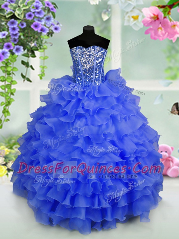 Enchanting Sleeveless Lace Up Floor Length Ruffled Layers and Sequins Kids Pageant Dress