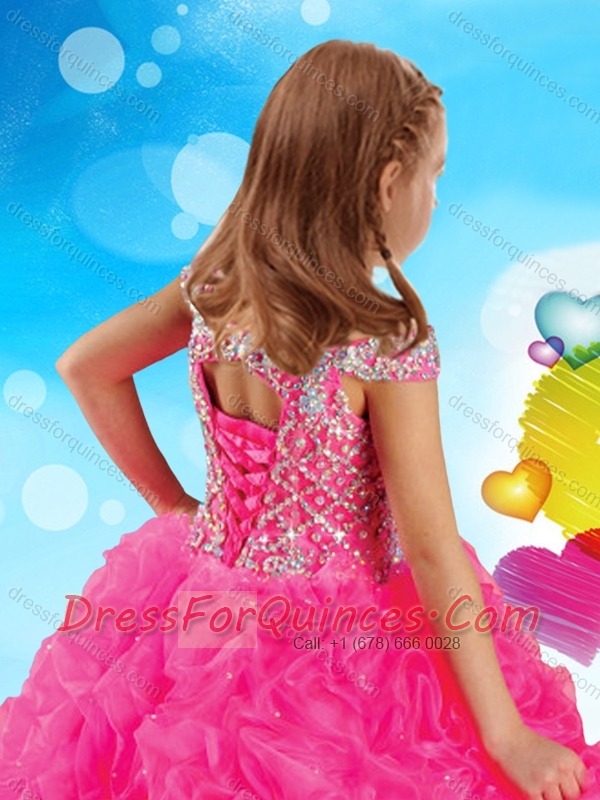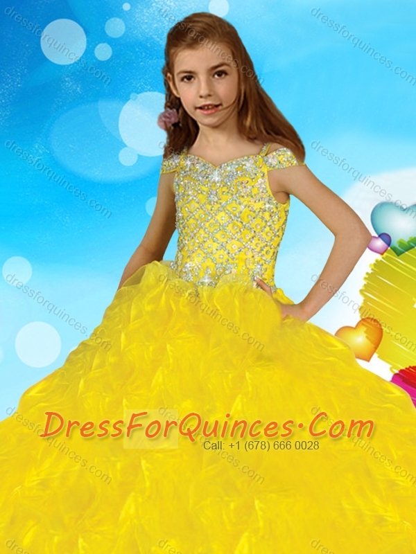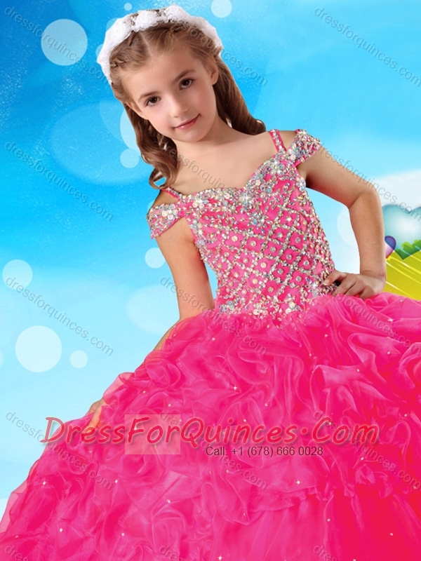 Exclusive Spaghetti Straps Adorable Little Girl Pageant Dress with Beading and Ruffles