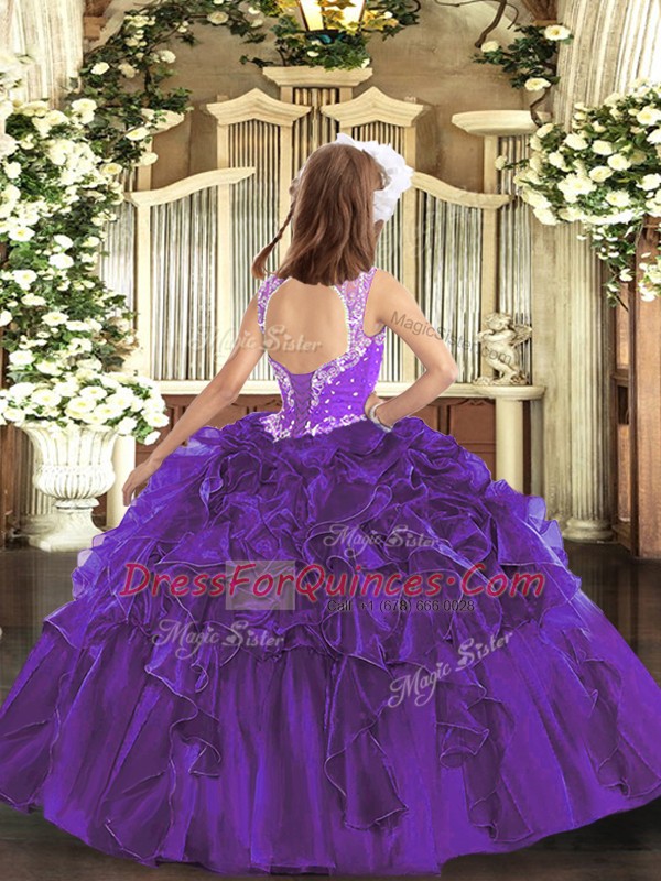 Fancy Floor Length Ball Gowns Sleeveless Rust Red Little Girls Pageant Dress Lace Up