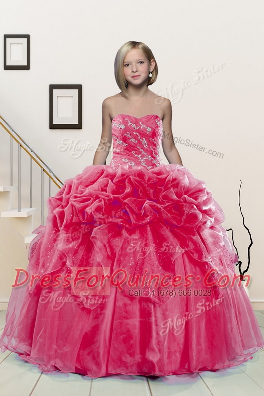 Fantastic Pick Ups Floor Length Hot Pink Little Girl Pageant Gowns Sweetheart Sleeveless Lace Up